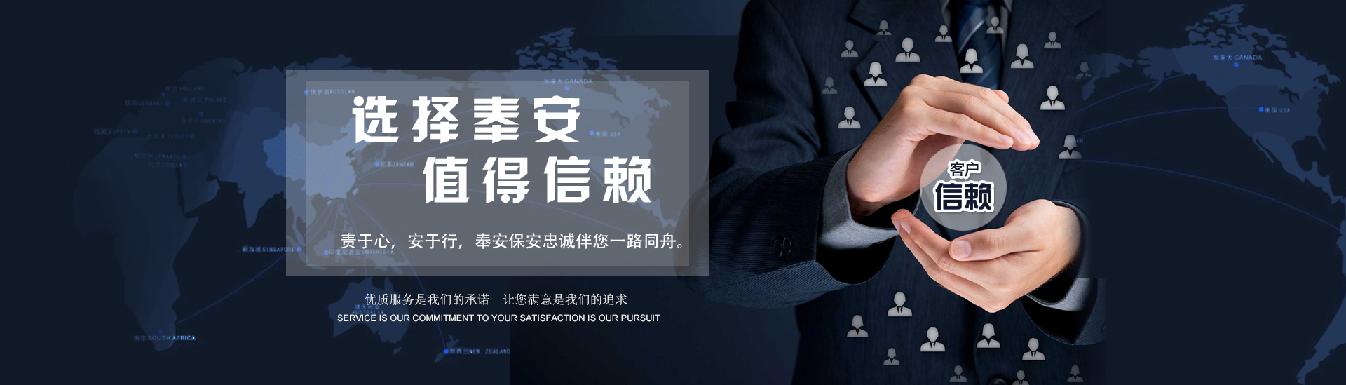 以客為尊 :客戶是公司生存和發(fā)展的決定因素,沈陽(yáng)奉安保安服務(wù)有限公司堅(jiān)持以客戶為上帝的經(jīng)營(yíng)理念,全力貫徹“以客為尊、以誠(chéng)待客”的服務(wù)宗旨
